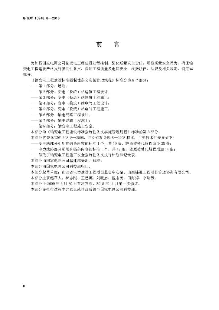 Q/GDW 10248.8-2016 输变电工程建设标准 强制性条文实施管理规程 第8部分:输变电工程施工安全