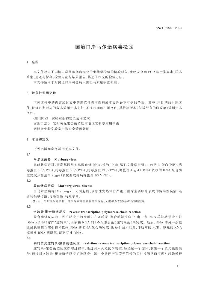 SN/T 3558-2025 国境口岸马尔堡病毒检验