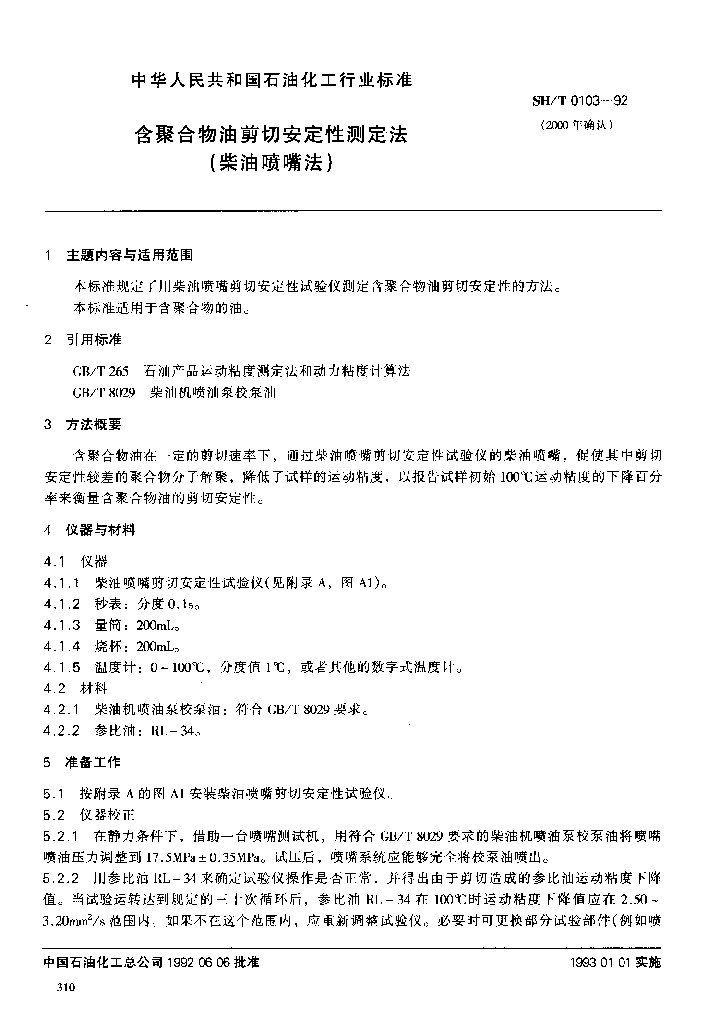 SH/T 0103-1992 含聚合物油剪切安定性测定法