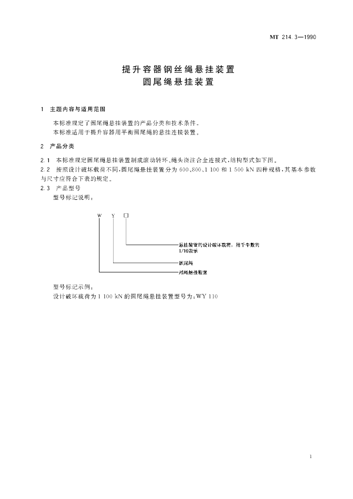 MT 214.3-1990 提升容器钢丝绳悬挂装置 圆尾绳悬挂装置