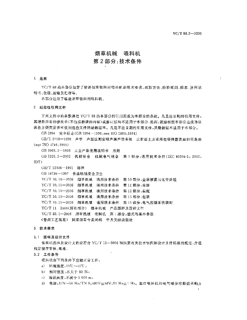 YC/T 88.2-2006 烟草机械 喂料机 第2部分:技术条件