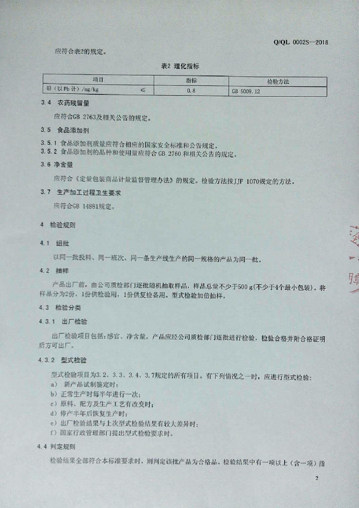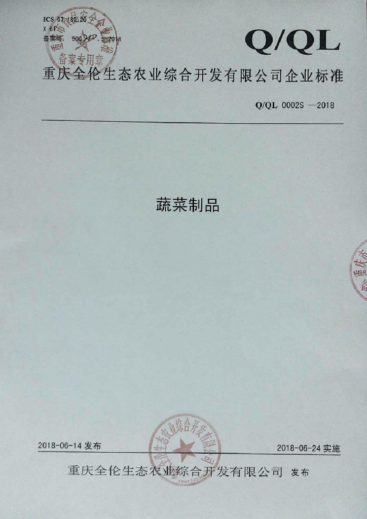 Q/QL 0002S-2018 蔬菜制品