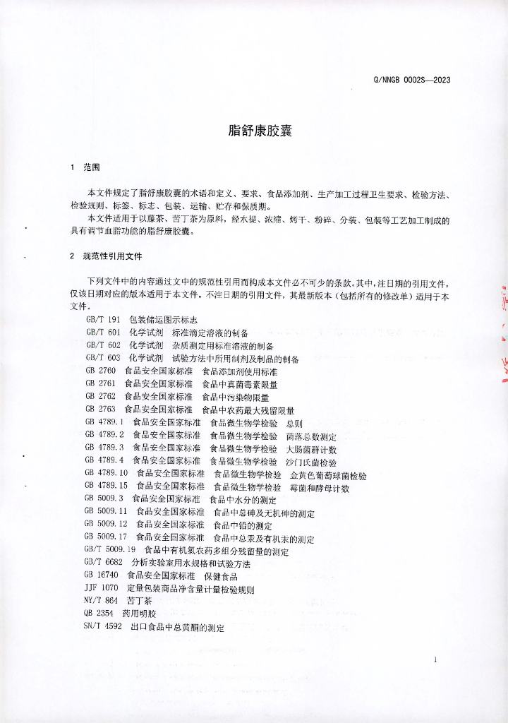 Q/NNGB 0002S-2023 脂舒康胶囊
