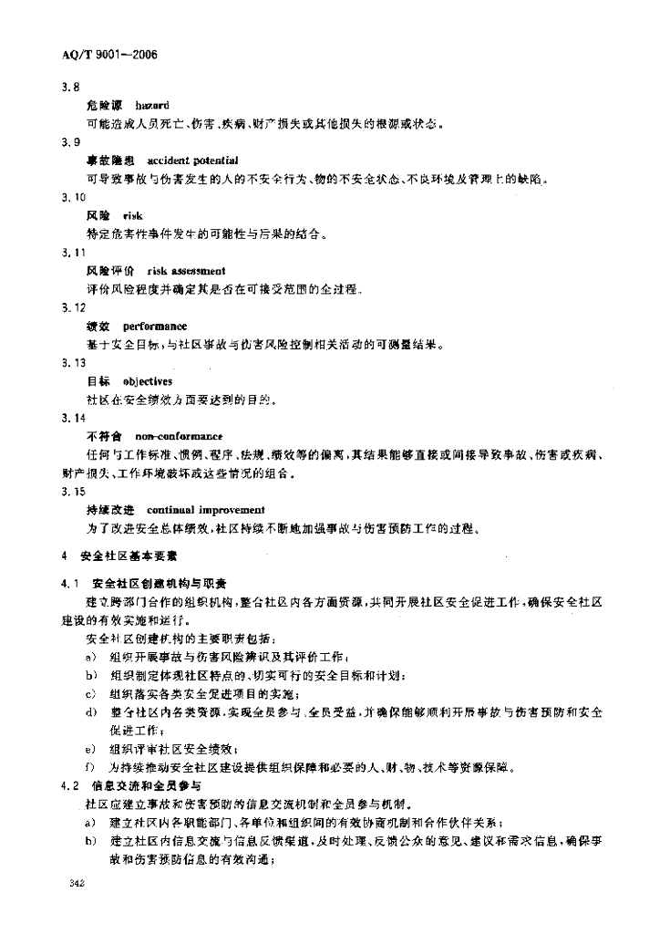 AQ/T 9001-2006 安全社区建设基本要求