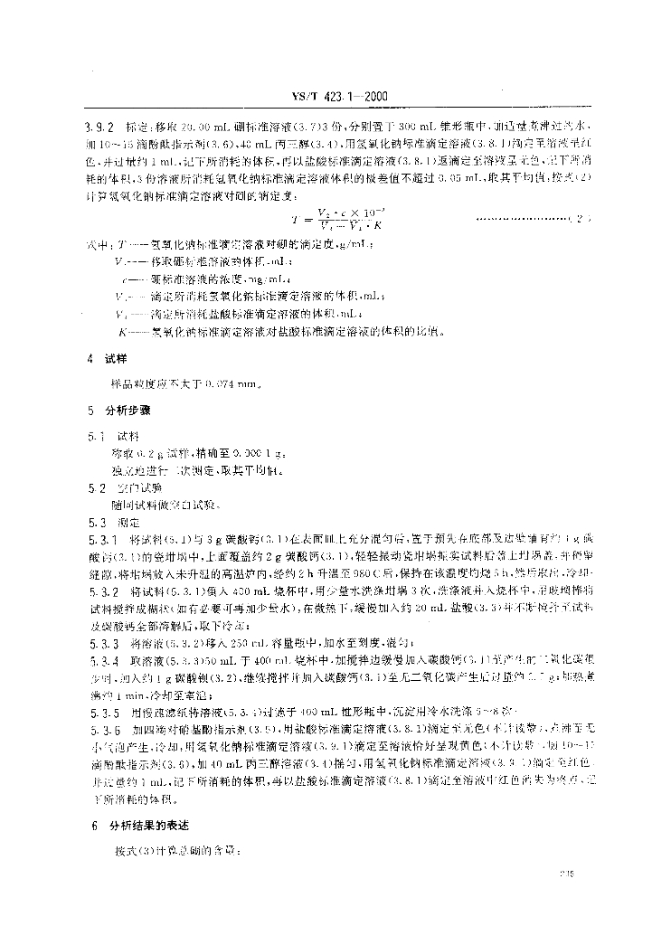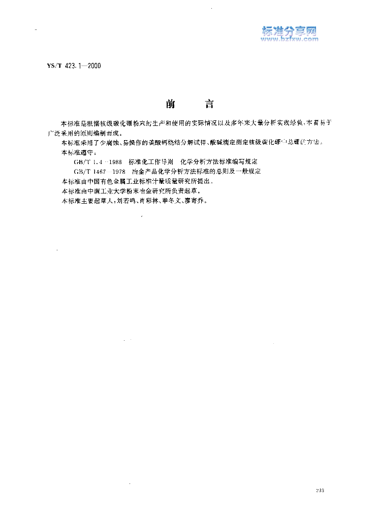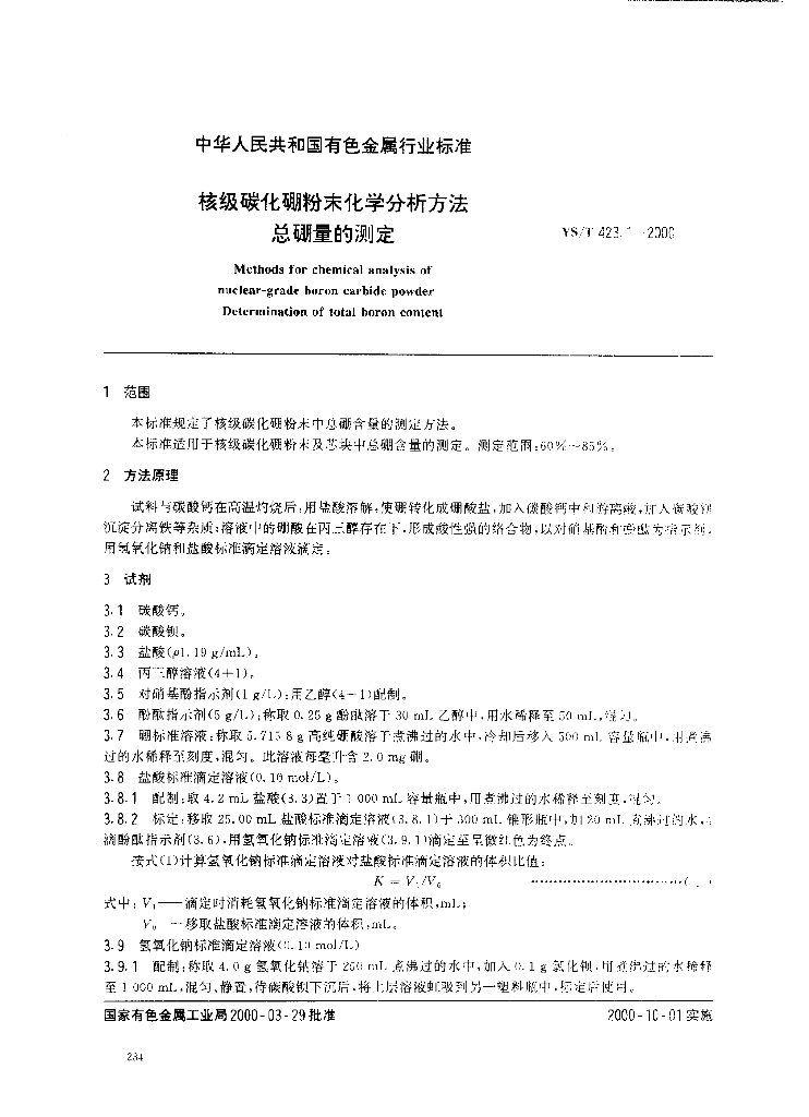 YS/T 423.1-2000 核及碳化硼粉末化学分析方法总硼量的测定