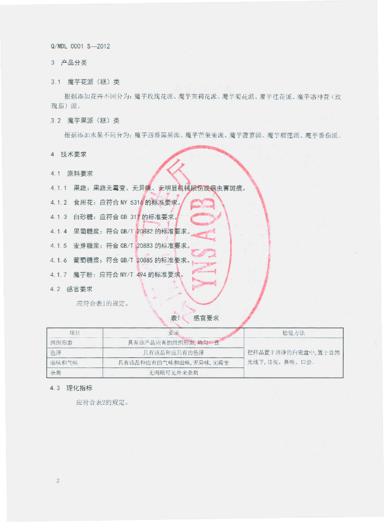 Q/MDL 0001S-2012 魔芋派(果糕)