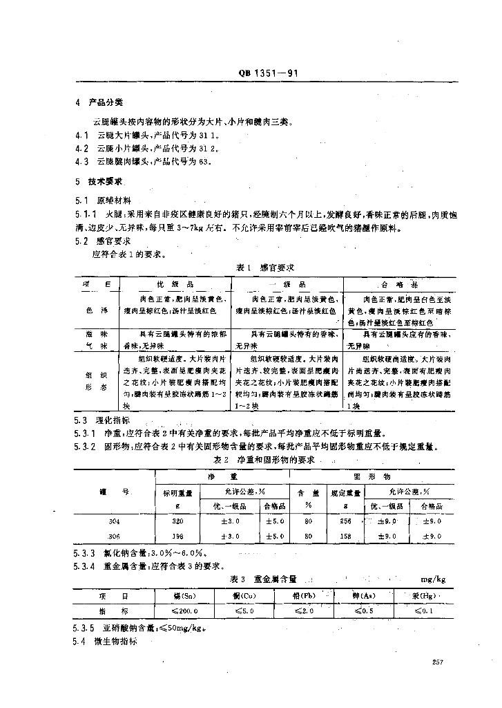 QB/T 1351-1991 云腿罐头
