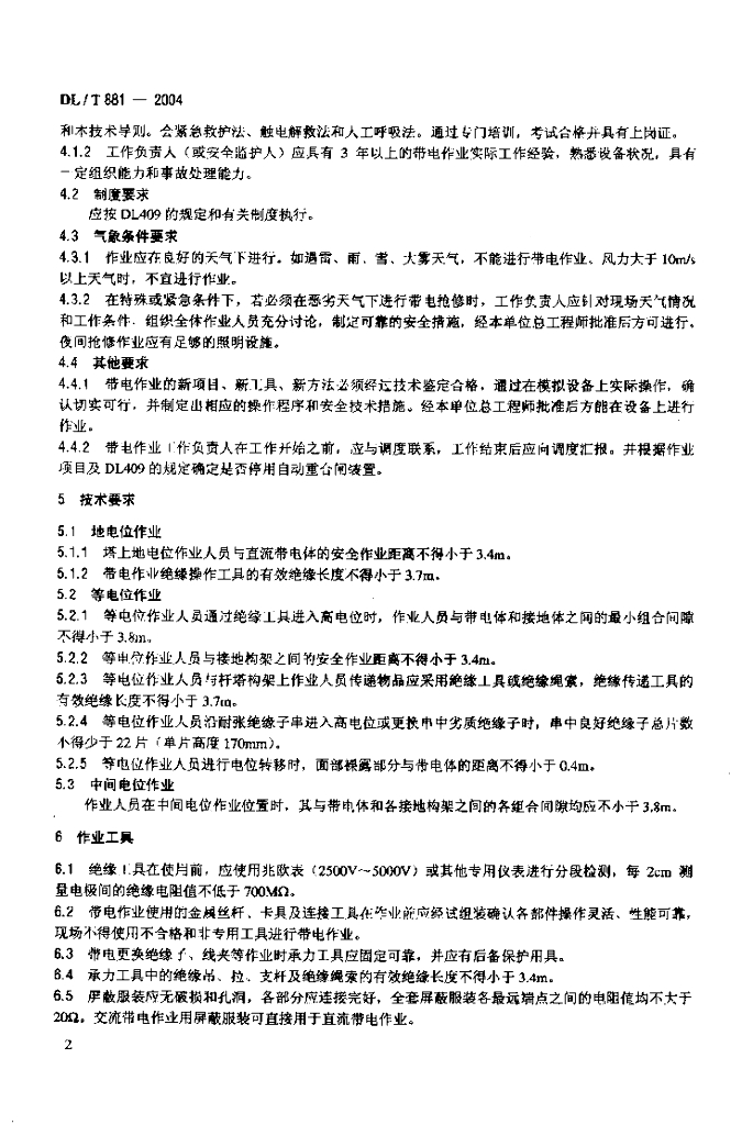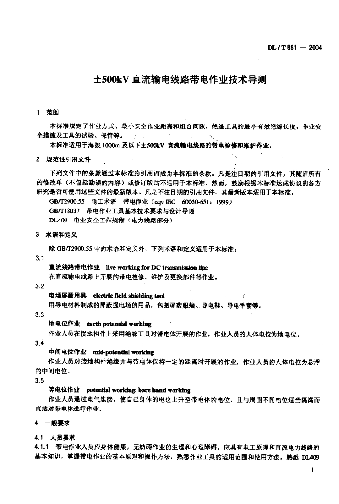 DL/T 881-2004 ±500kV直流输电线路带电作业技术导则