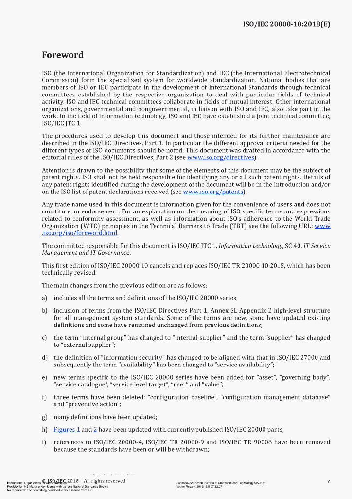 ISO/IEC 20000-10:2018(E) Information technology – Service management-Part 10:Concepts and vocabulary