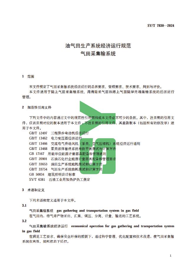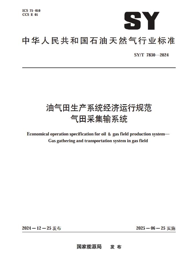 SY/T 7830-2024 油气田生产系统经济运行规范 气田采集输系统