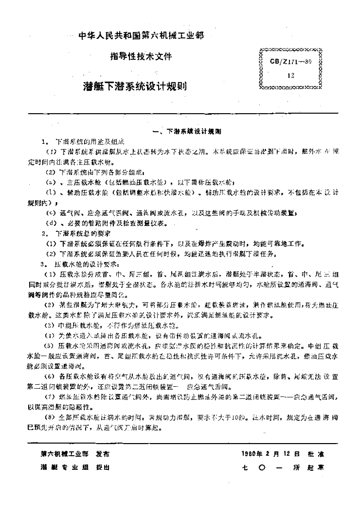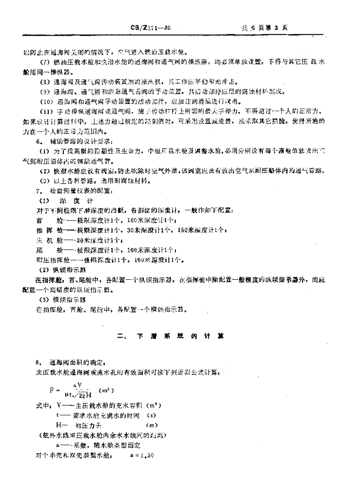 CB/Z 171-1980 潜艇下潜系统设计规则