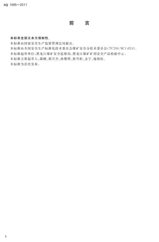 AQ 1085-2011 煤矿进风井地面用燃煤热风炉安全技术条件