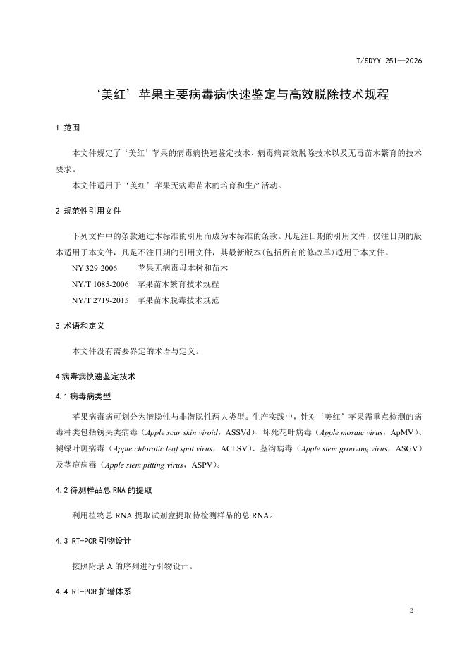 T/SDYY 251-2026 ‘美红’苹果主要病毒病快速鉴定与高效脱除技术规程