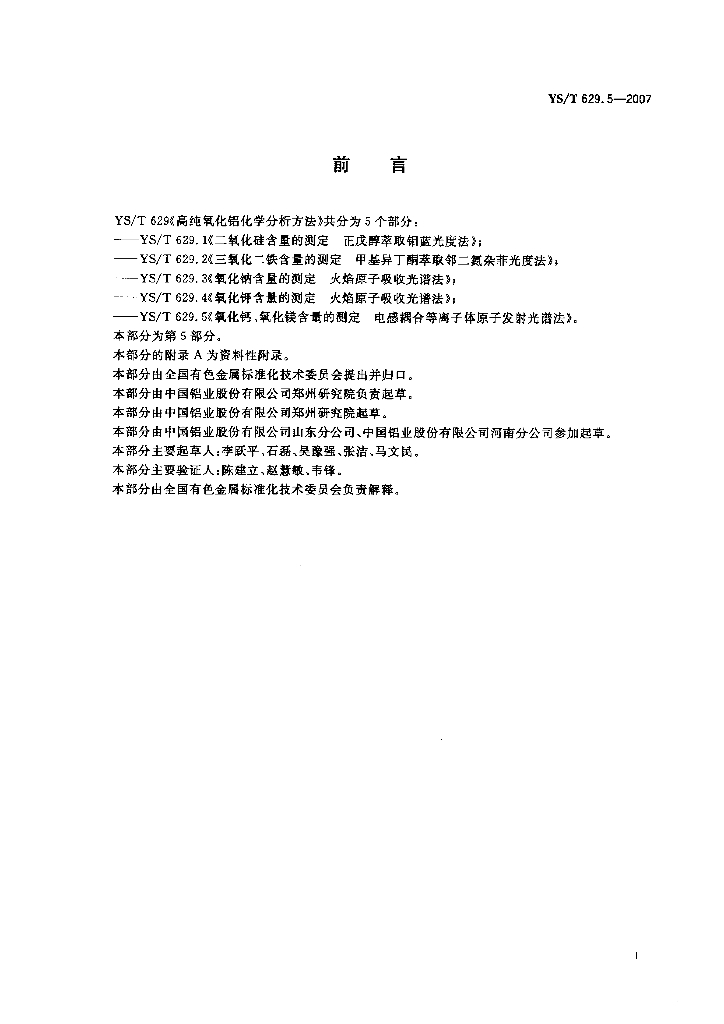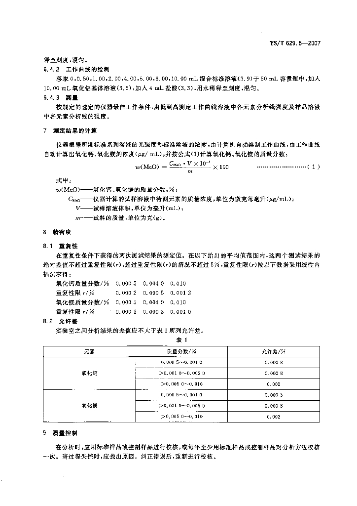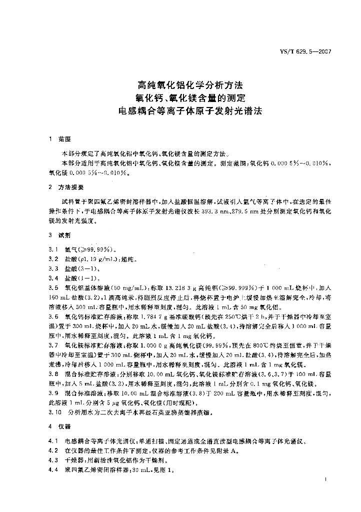 YS/T 629.5-2007 高纯氧化铝化学分析方法 氧化钙、氧化镁含量的测定 电感耦合等离子体原子发射光谱法