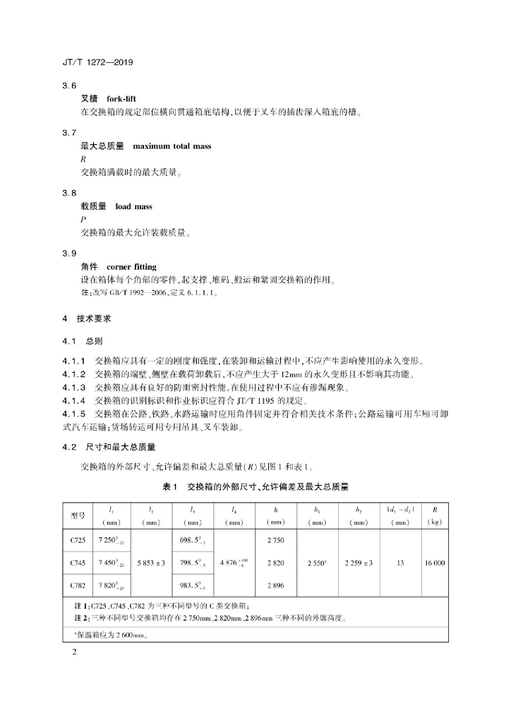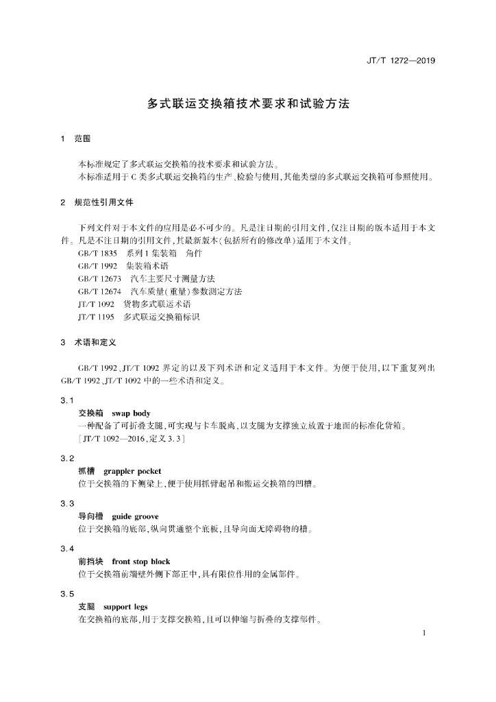 JT/T 1272-2019 多式联运交换箱技术要求和试验方法