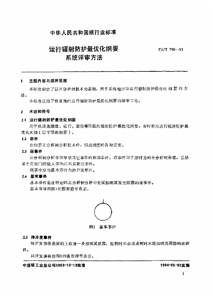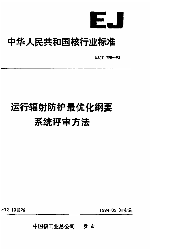 EJ/T 790-1993 运行辐射防护最优化纲要系统评审方法