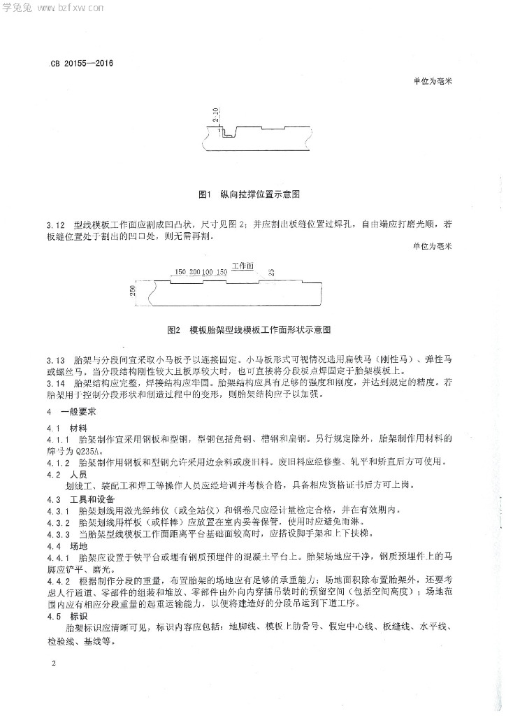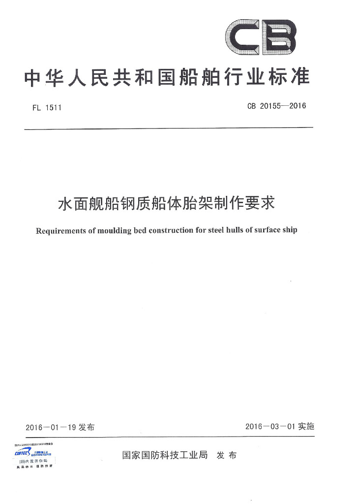 CB 20155-2016 水面舰船钢质船体胎架制作要求