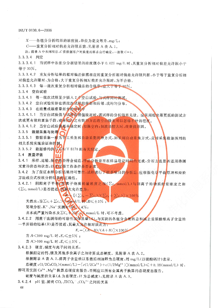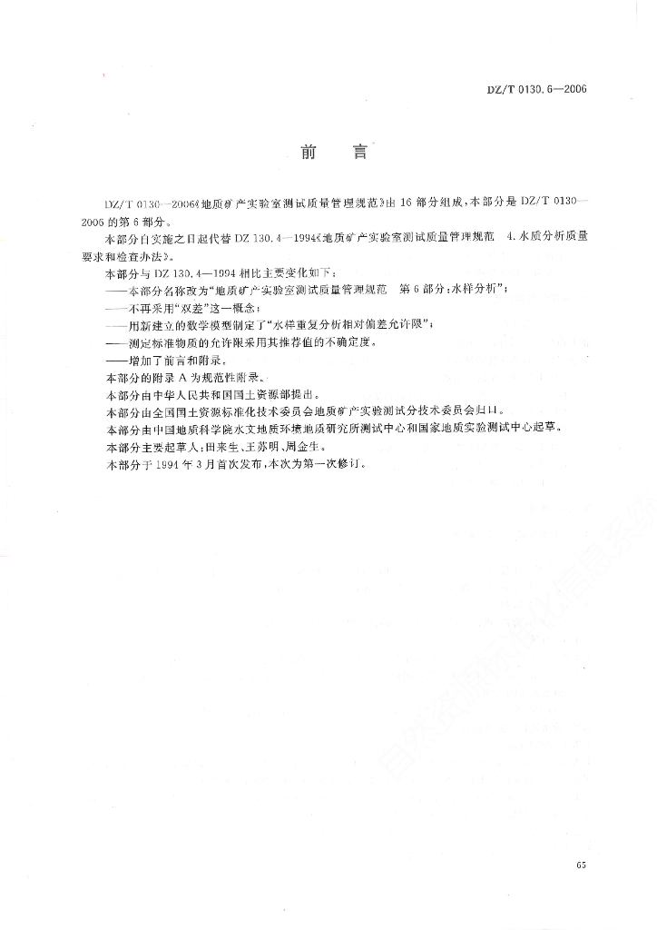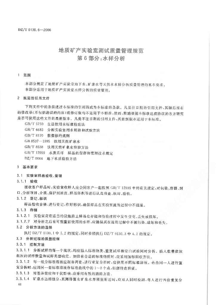 DZ/T 0130.6-2006 地质矿产实验室测试质量管理规范 第6部分:水样分析