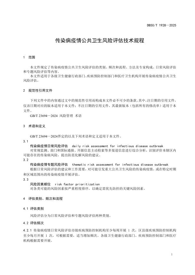 DB50/T 1928-2025 传染病疫情公共卫生风险评估技术规程