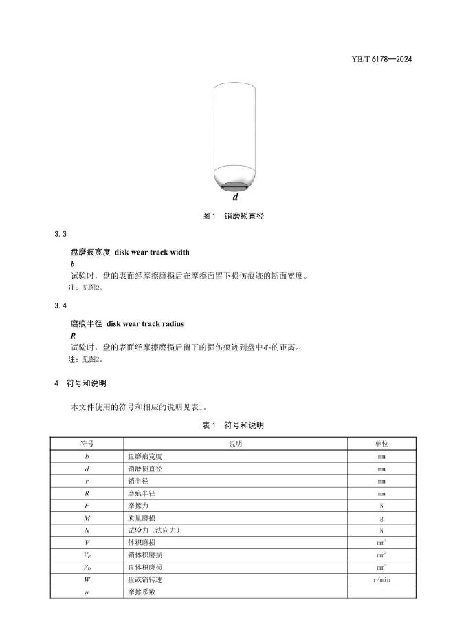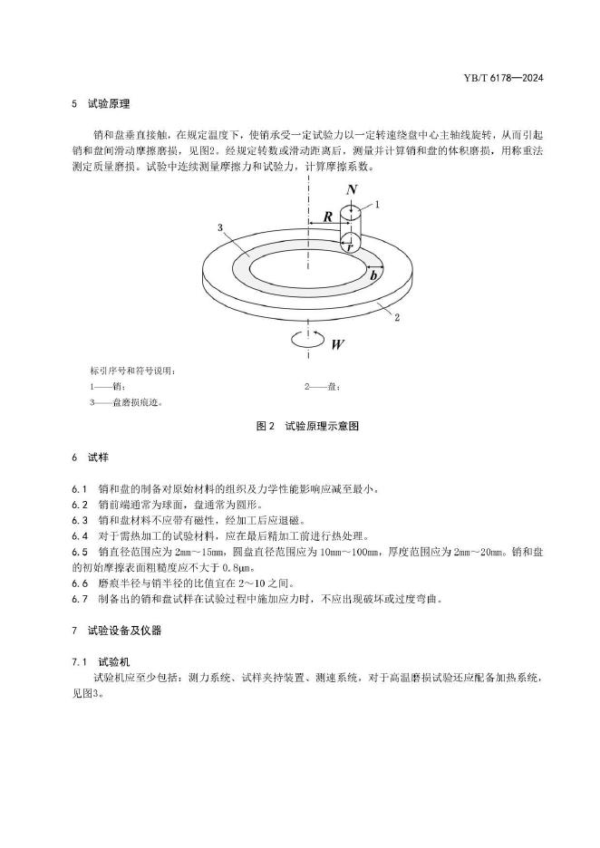 YB/T 6178-2024 金属材料 磨损试验 销-盘摩擦磨损方法