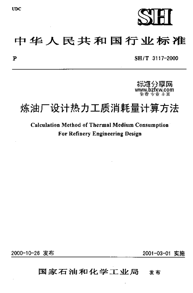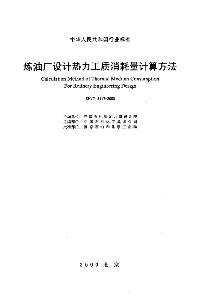 SH/T 3117-2000 炼油厂设计热力工质消耗量计算方法