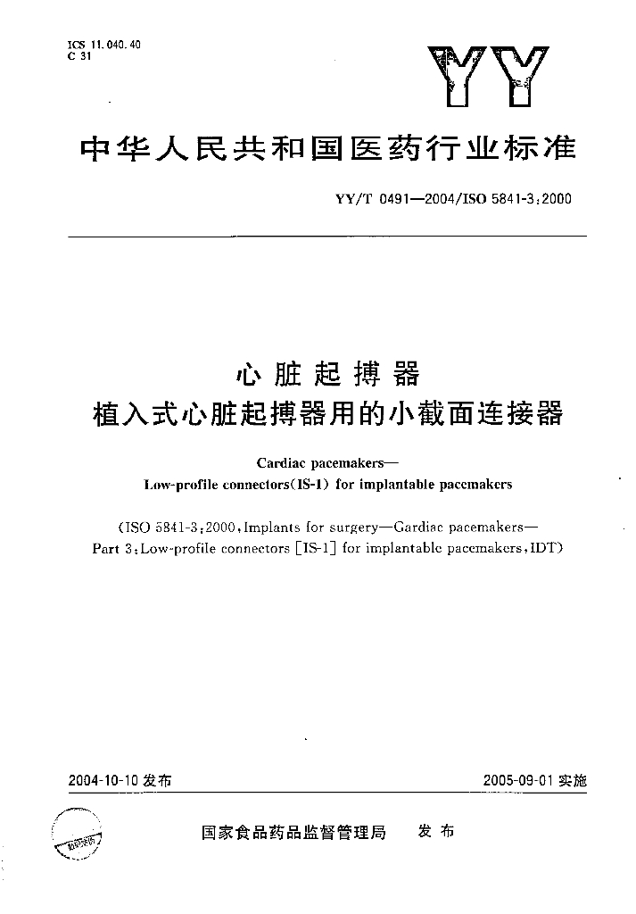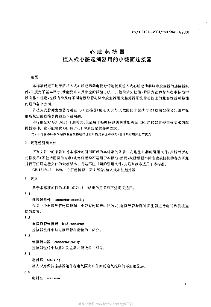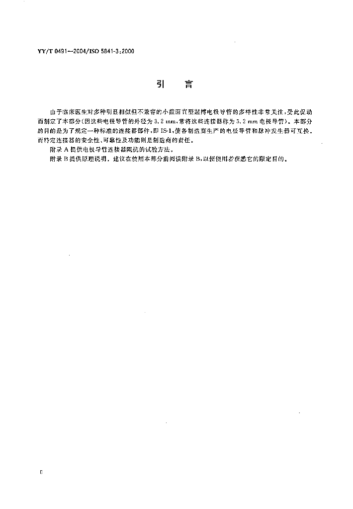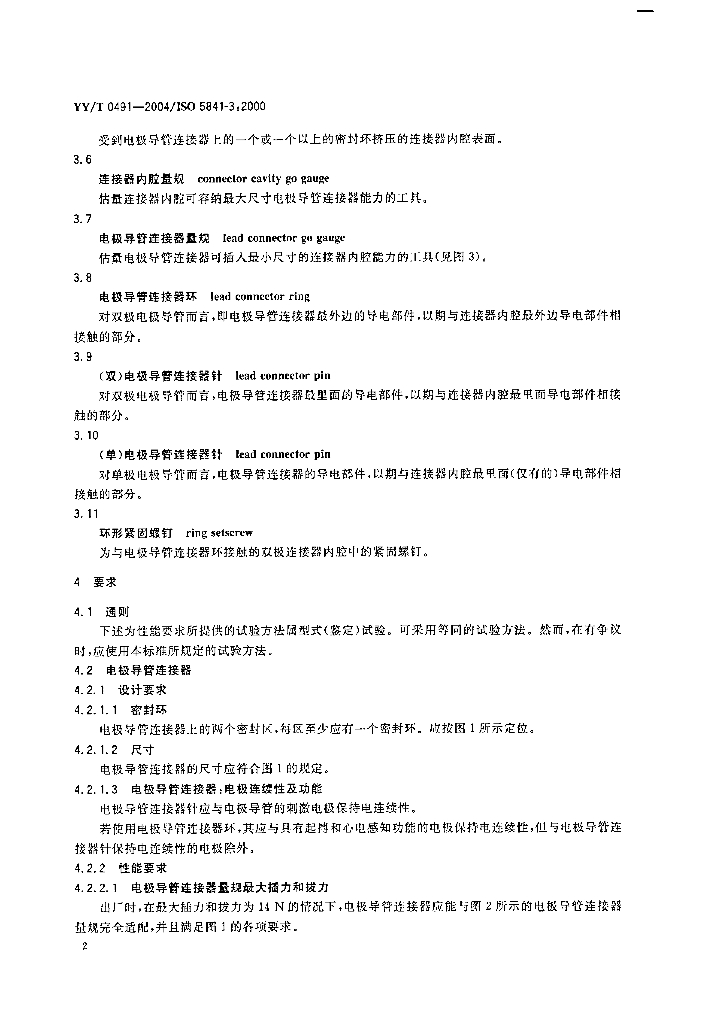 YY/T 0491-2004/ISO 5841-3:2000 心脏起搏器植入式心脏起搏器用的小截面连接器