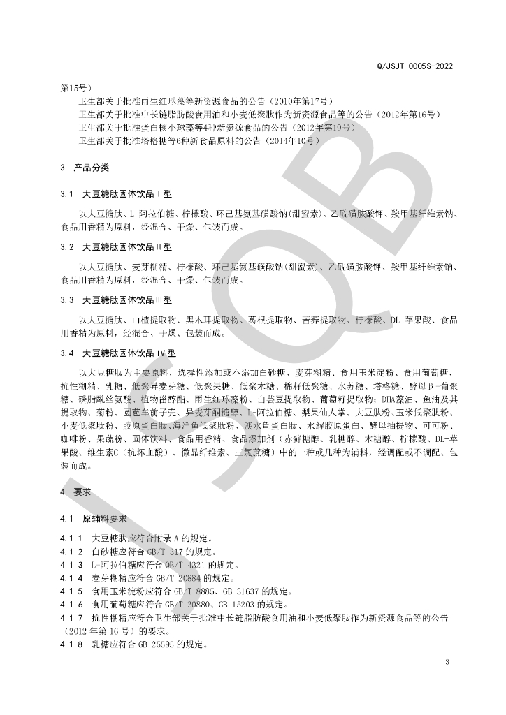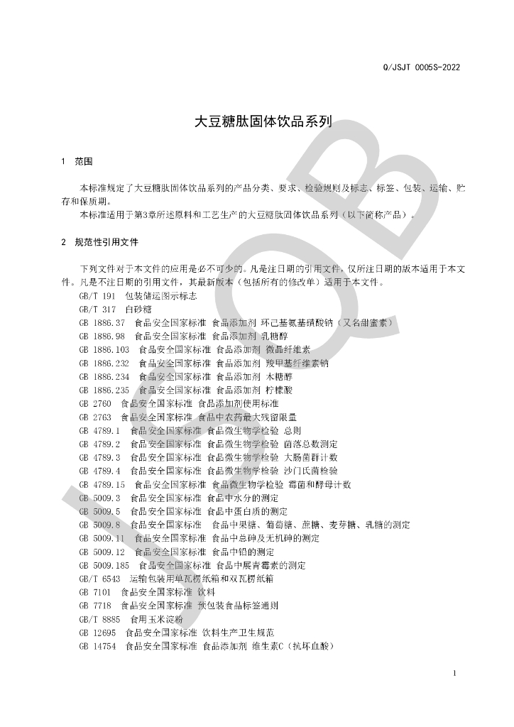 Q/JSJT 0005S-2022 大豆糖肽固体饮品系列