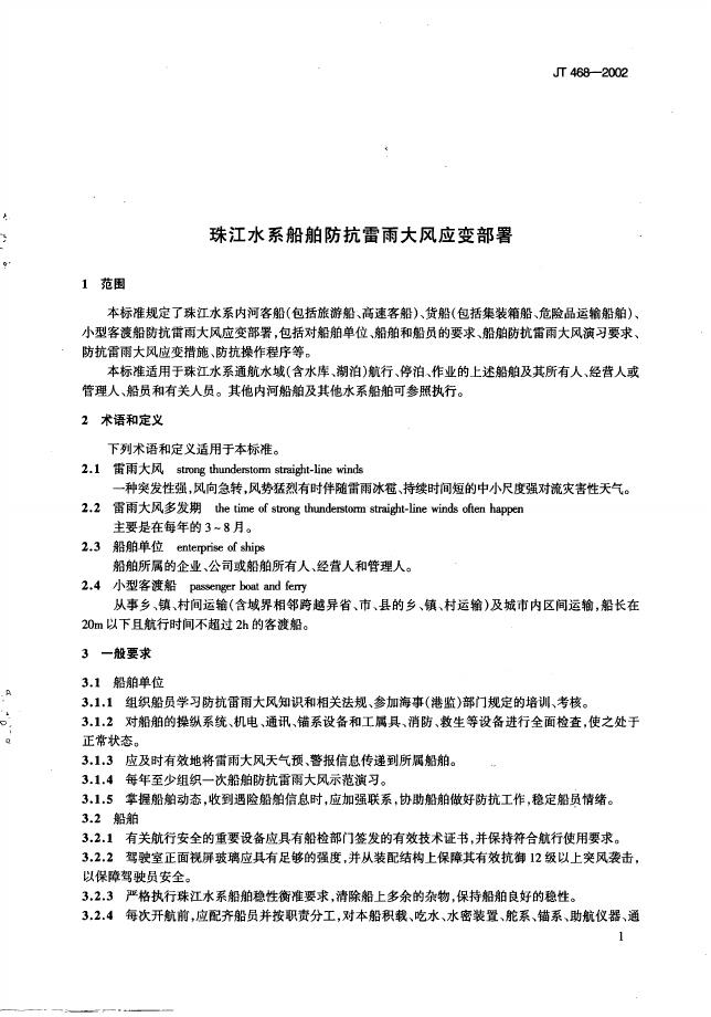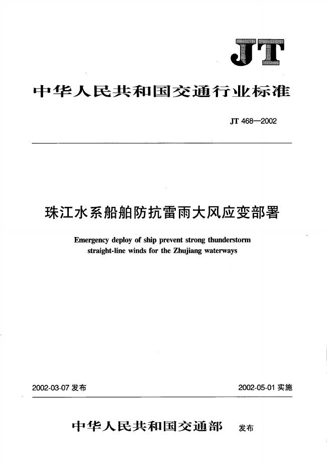 JT/T 468-2002 珠江水系船舶防抗雷雨大风应变部署
