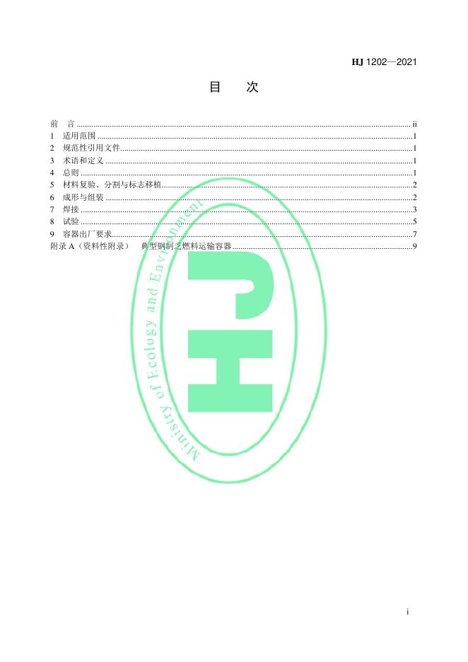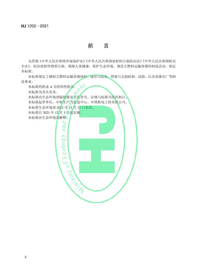 HJ 1202-2021 钢制乏燃料运输容器制造通用技术要求