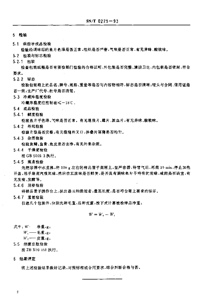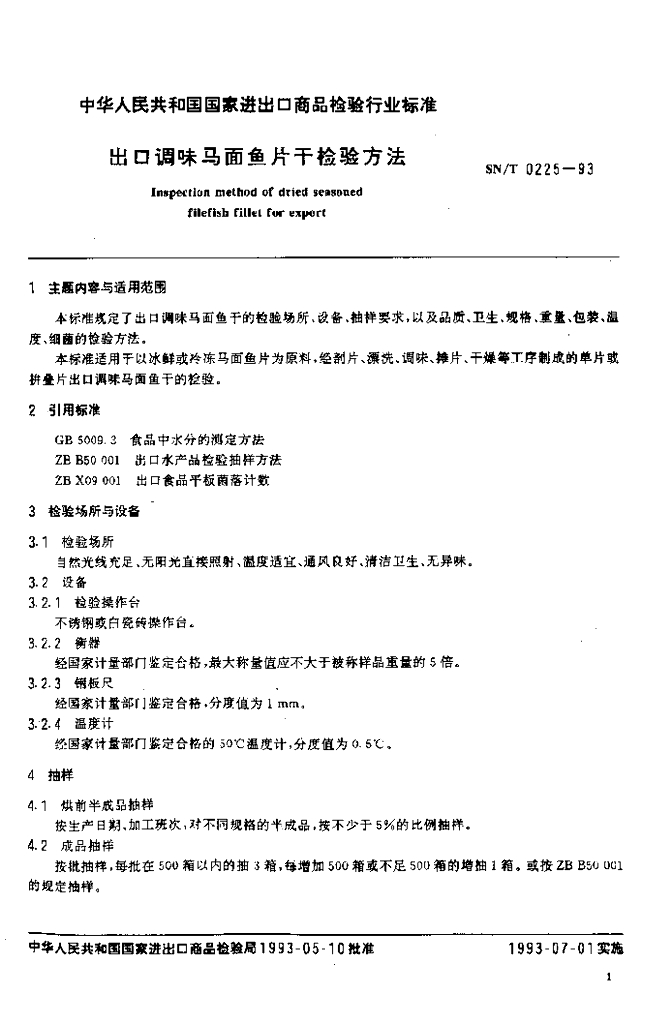 SN/T 0225-1993 出口调味马面鱼片干检验方法