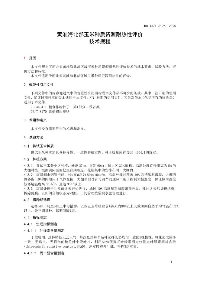 DB13/T 6196-2025 黄淮海北部玉米种质资源耐热性评价技术规程