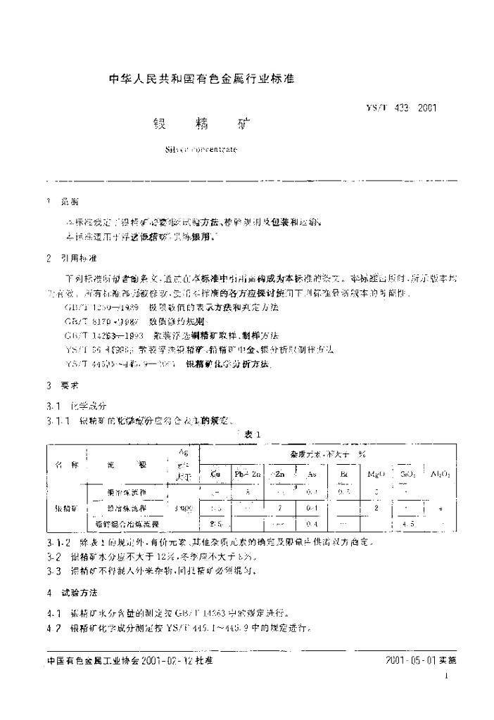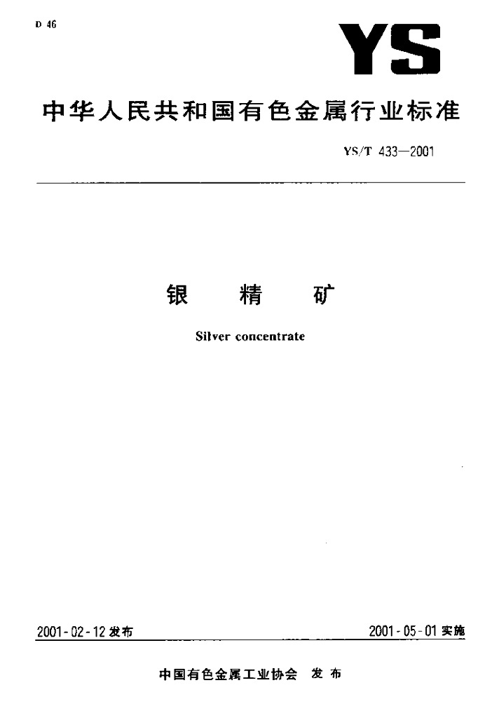 YS/T 433-2001 银精矿