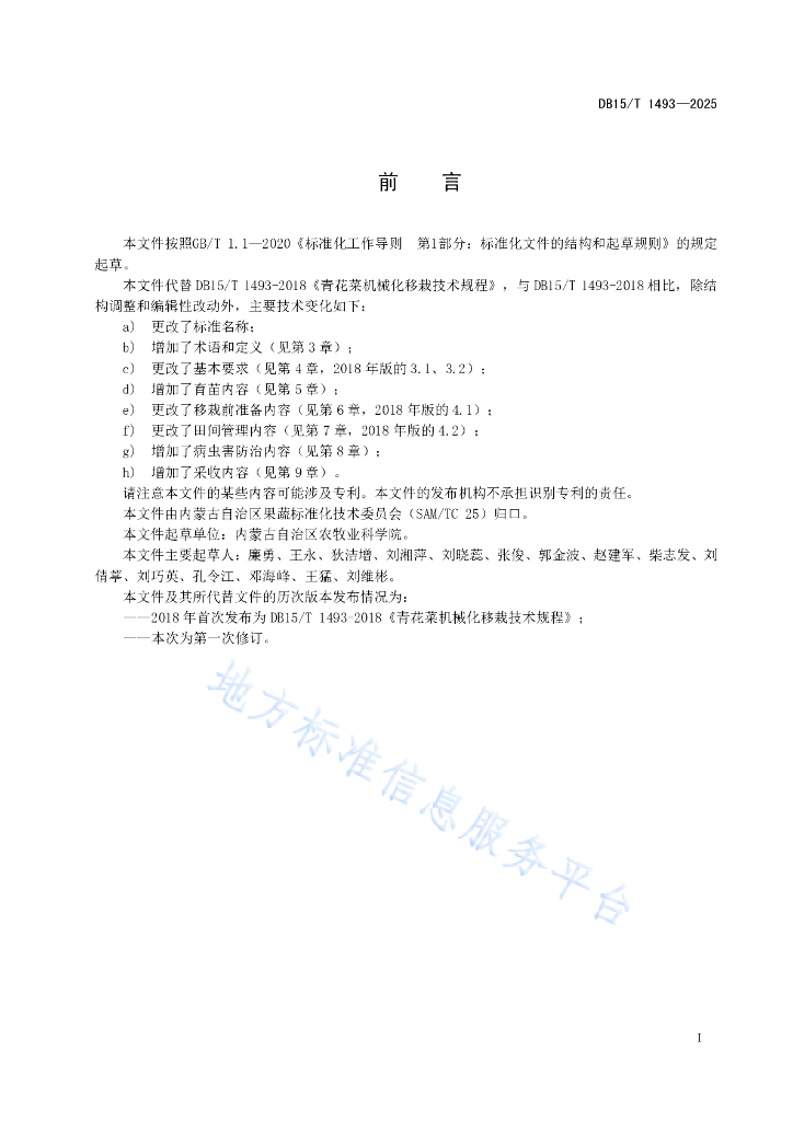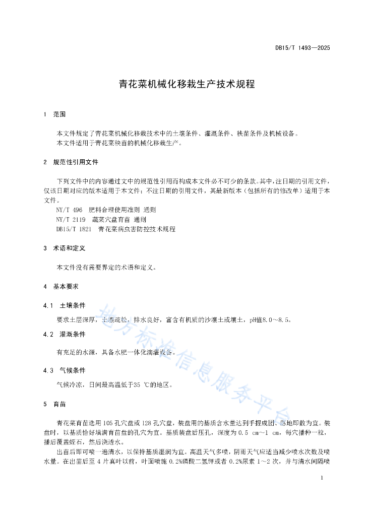 DB15/T 1493-2025 青花菜机械化移栽生产技术规程
