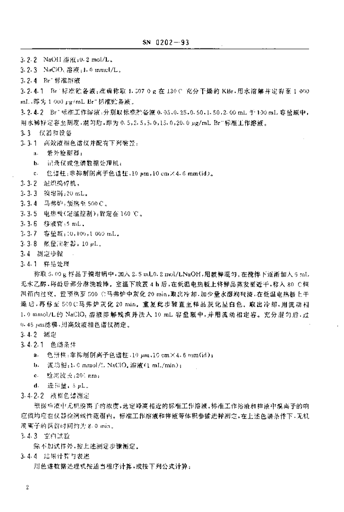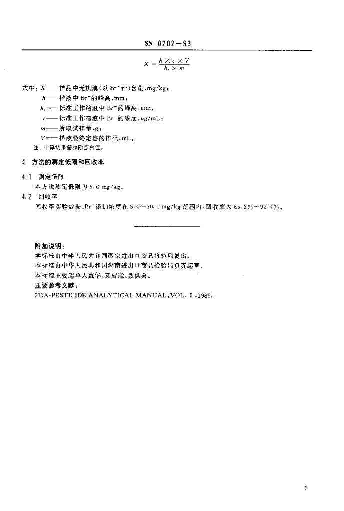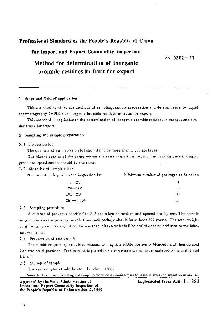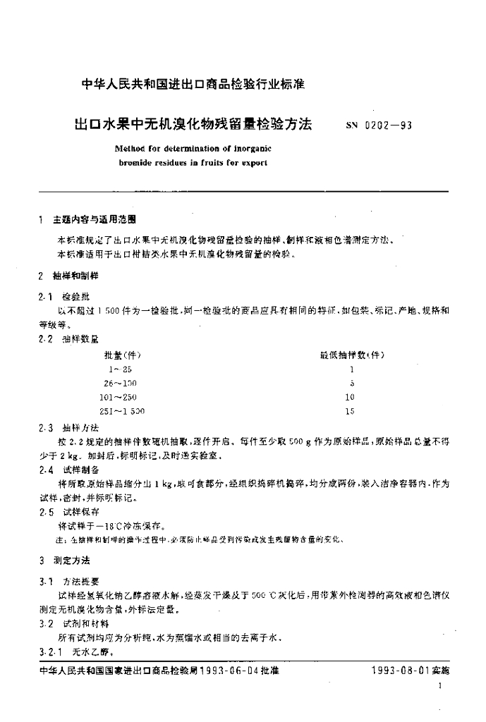SN 0202-1993 出口水果中无机溴化物残留量检验方法