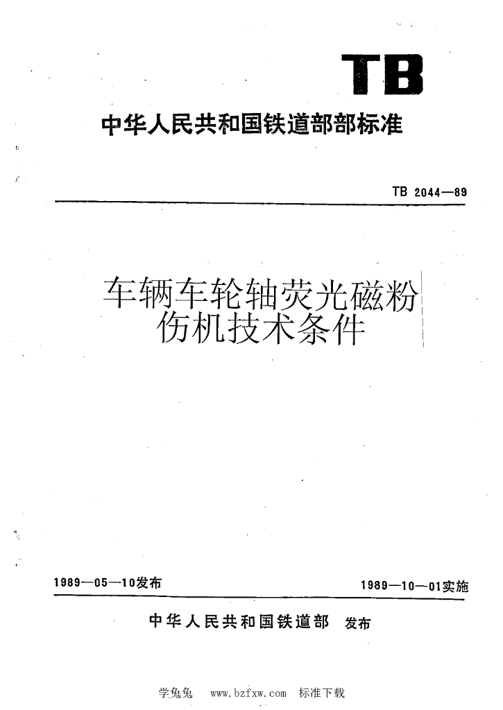 TB 2044-1989 车辆车轮轴萤光磁粉探伤机技术条件