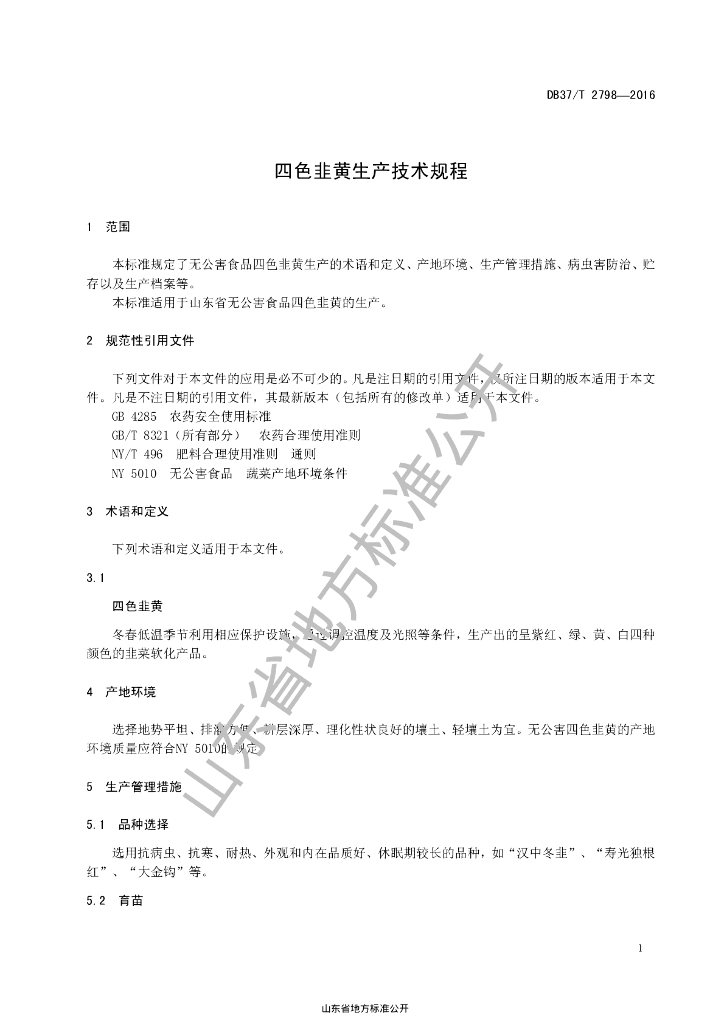 DB37/T 2798-2016 四色韭黄生产技术规程