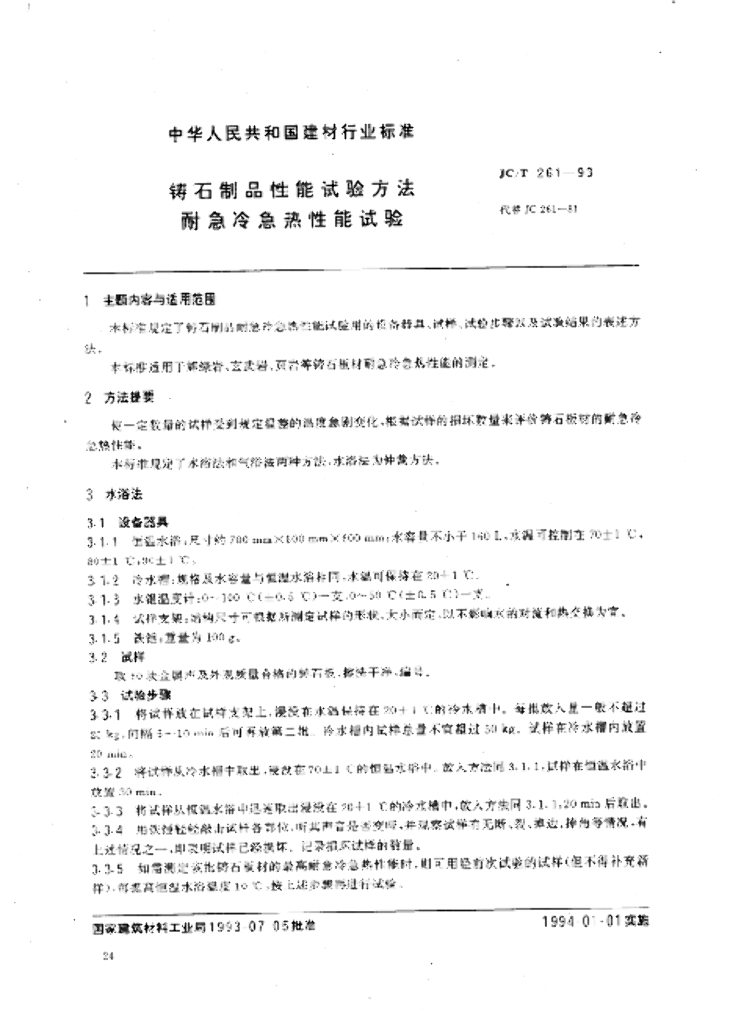 JC/T 261-1993 铸石制品性能试验方法 耐急冷急热性能试验