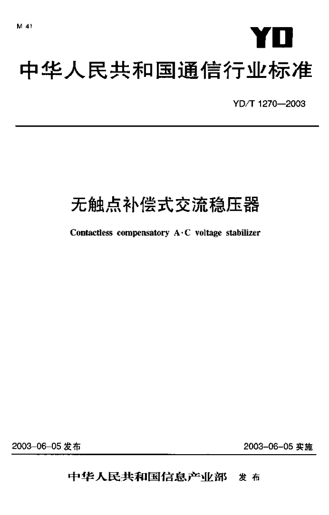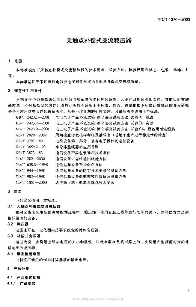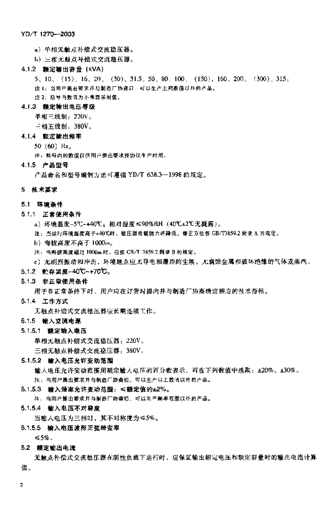 YD/T 1270-2003 无触点补偿式交流稳压器