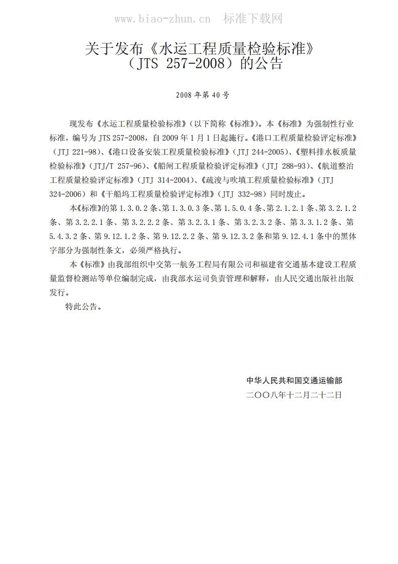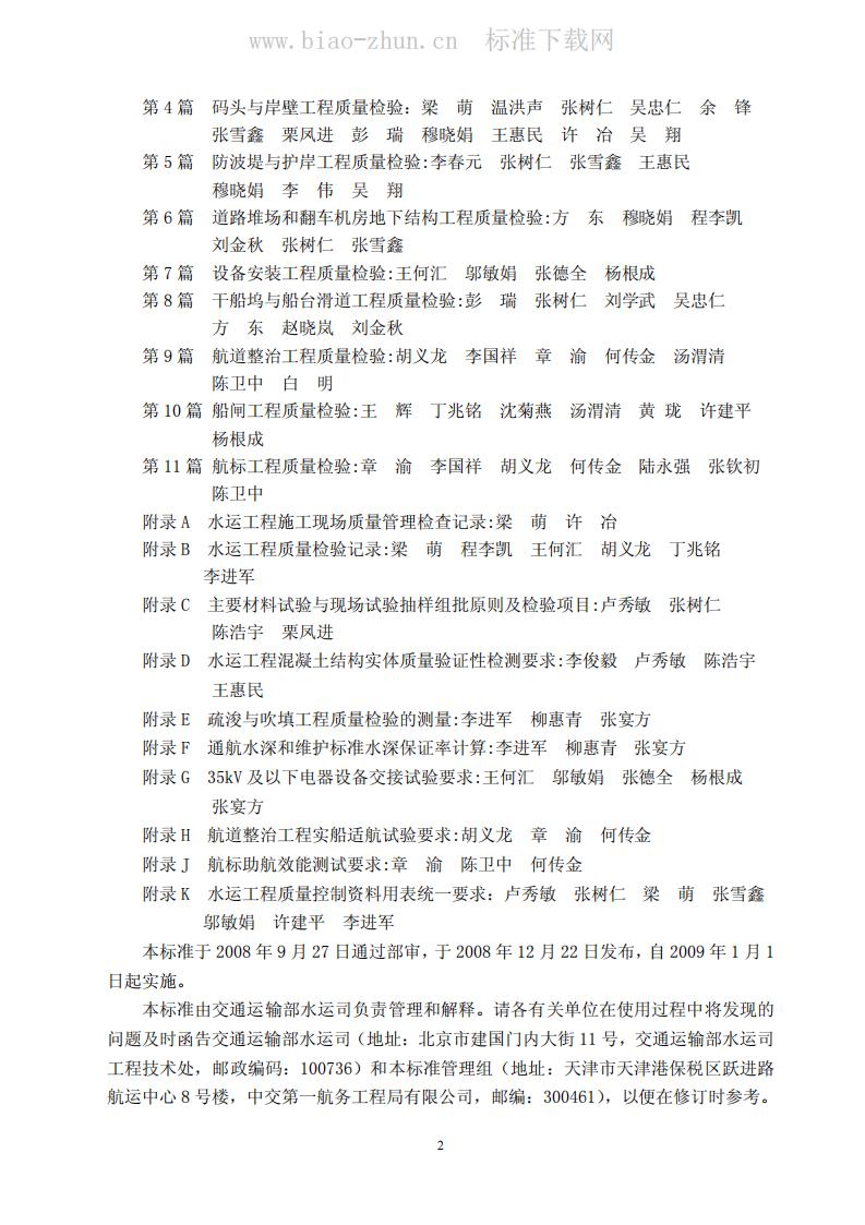 中交第一航务工程局有限公司、福建省交通基本建设工程质量监督检测站、中交第二航务工程局有限公司、中交第三航务工程局有限公司、中交第四航务工程局有限公司、中交天津航道局有限公司、交通运输部长江航务管理局、广东省航道局、上海海事局、天津港(集团)有限公司、中交第一航务工程勘察设计院有限公司、江苏省交通规划设计院有限公司、江苏省交通厅工程质量监督站、中交天津港湾工程研究院有限公司、中交天津港航勘察研究院有限公司、天津一航安装工程有限公司、天津中北港湾工程建设监理有限公司