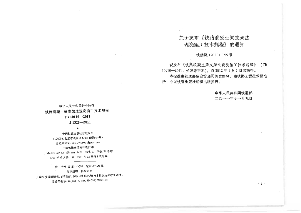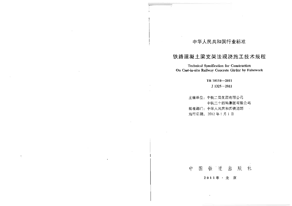 TB 10110-2011 铁路混凝土梁支架法现浇施工技术规程