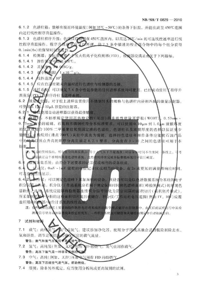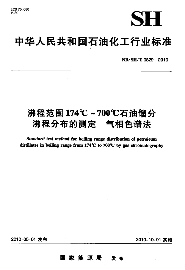 NB/SH/T 0829-2010 沸程范围174℃~700℃石油馏分沸程分布的测定气相色谱法