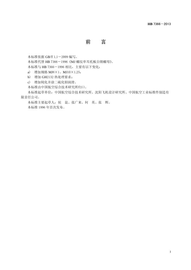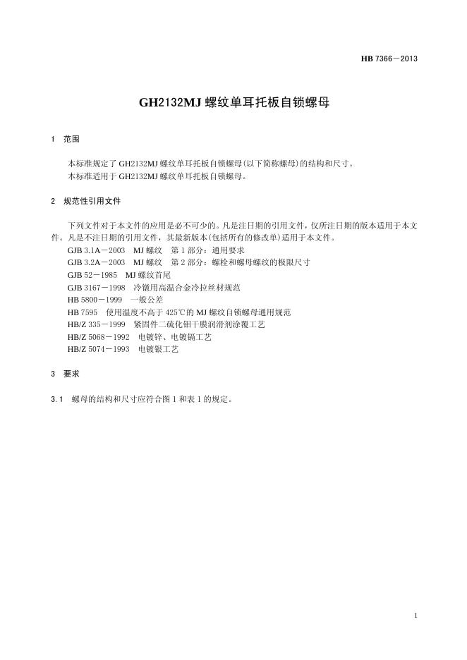 HB 7366-2013(2017) GH2132MJ螺纹单耳托板自锁螺母