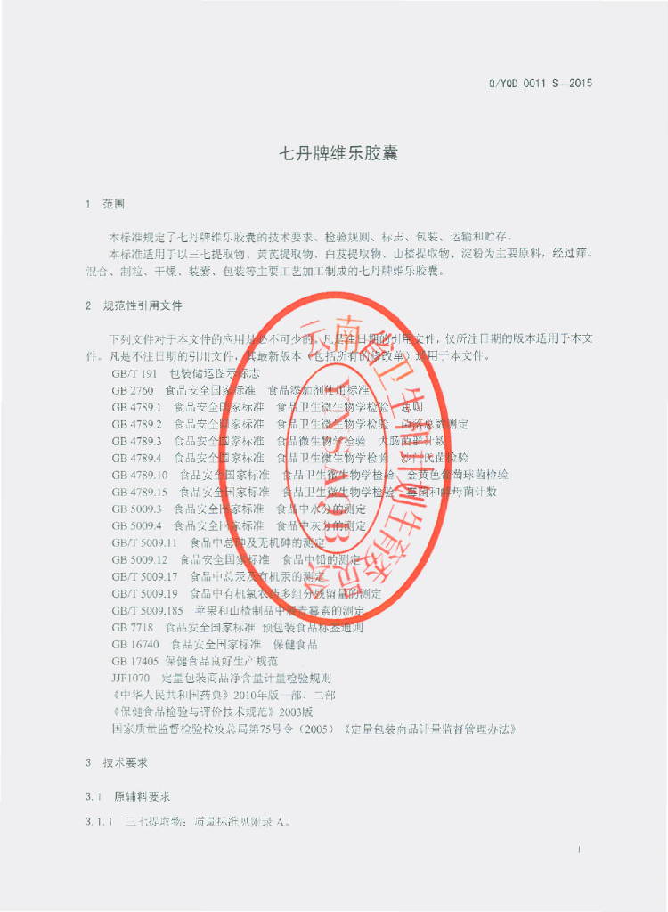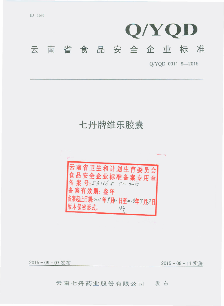 Q/YQD 0011S-2015 云南七丹药业股份有限公司 七丹牌维乐胶囊