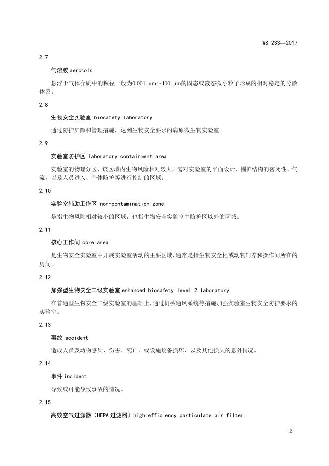 WS 233-2017 病原微生物实验室生物安全通用准则