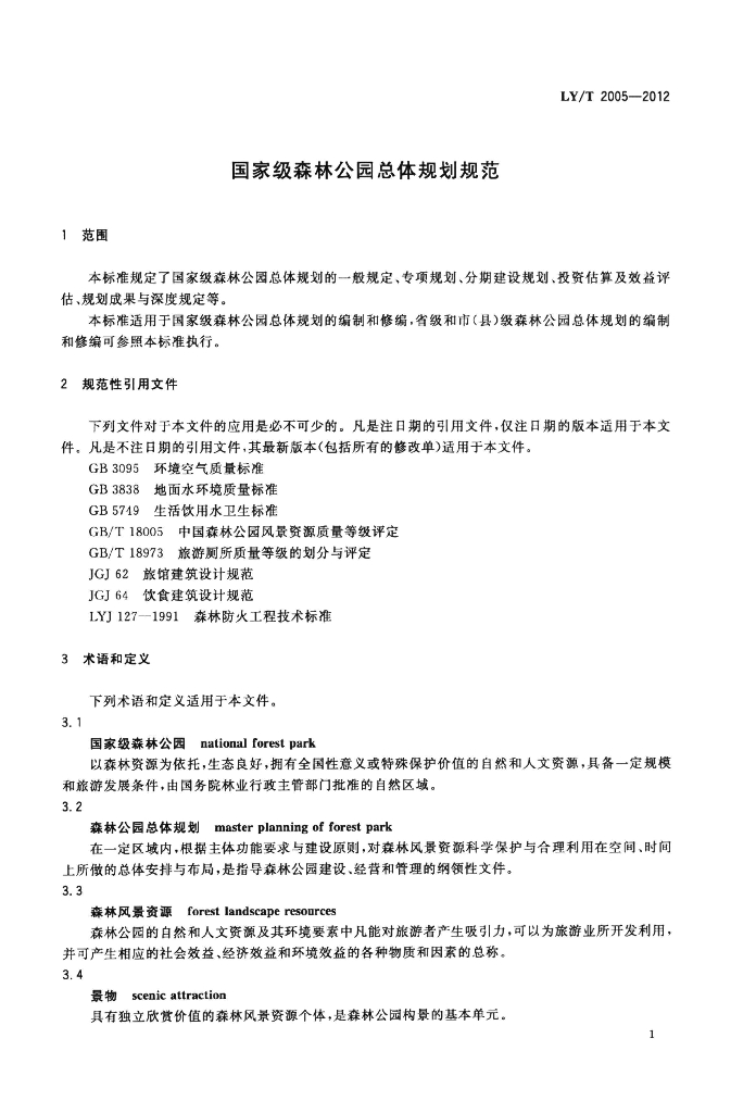 LY/T 2005-2012 国家级森林公园总体规划规范
