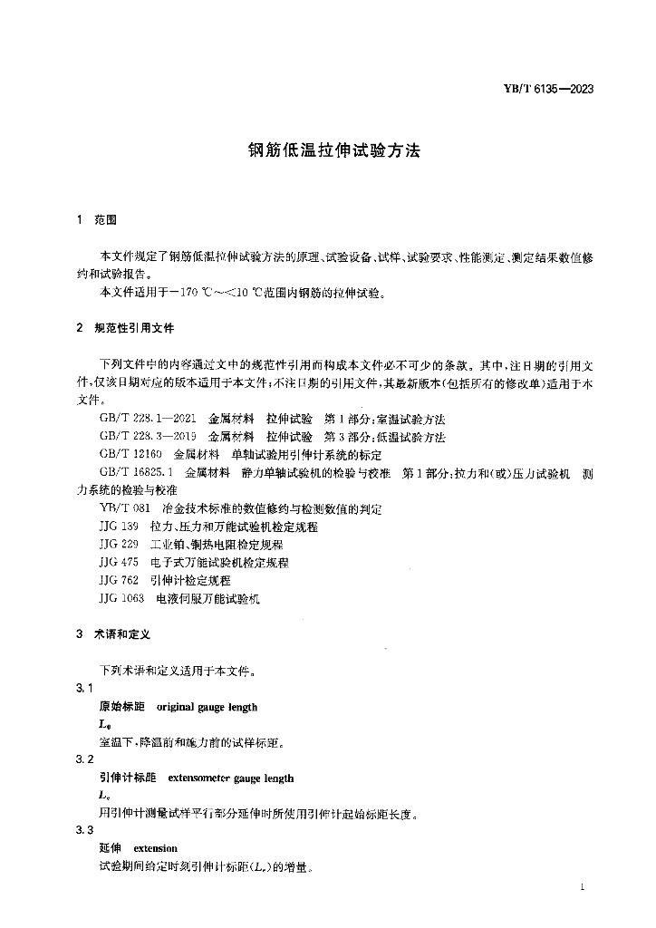 YB/T 6135-2023 钢筋低温拉伸试验方法