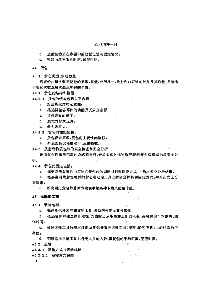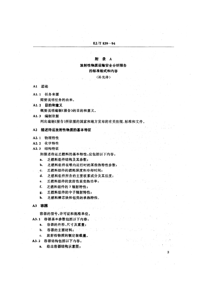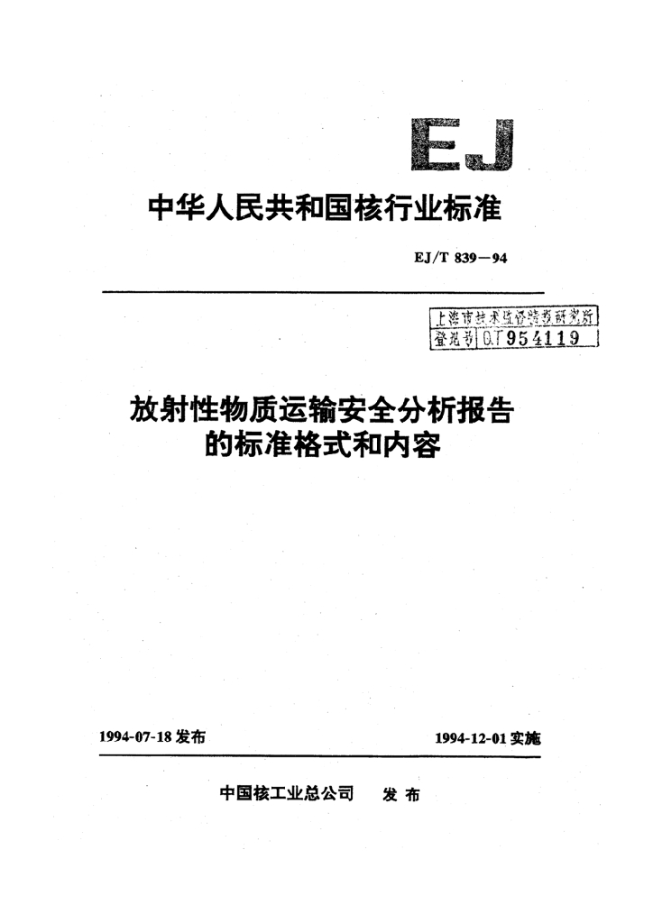 EJ/T 839-1994 放射性物质运输安全分析报告的标准格式和内容