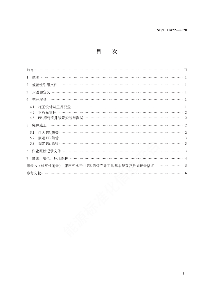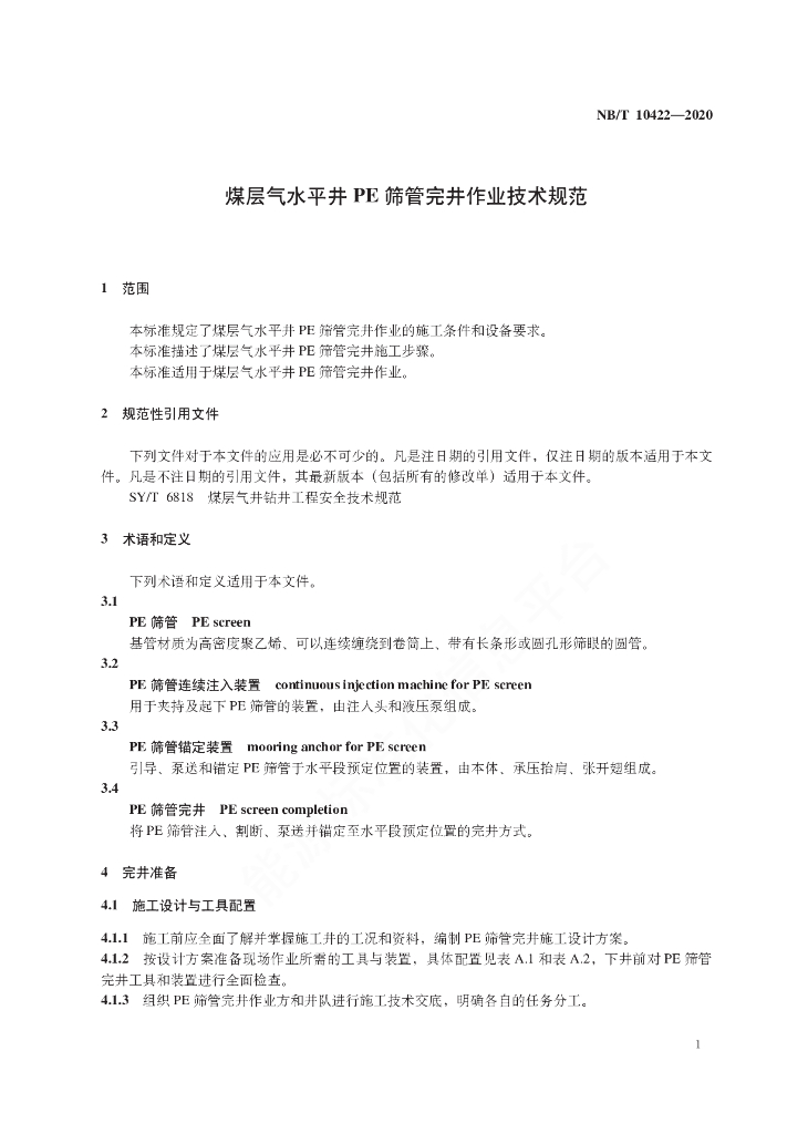 NB/T 10422-2020 煤层气水平井PE筛管完井作业技术规范