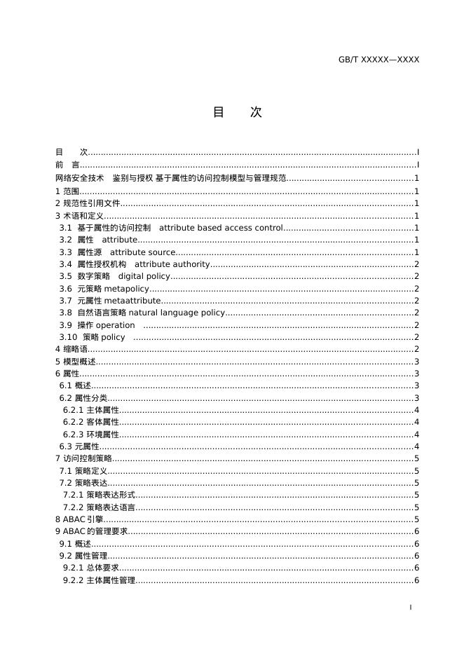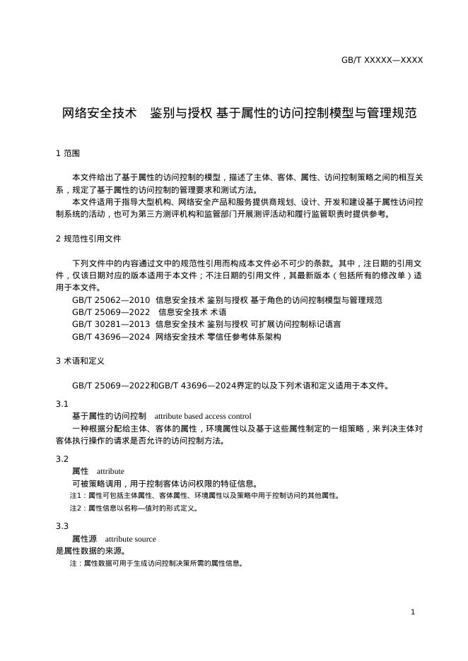 GB/T XXXX-XXXX 网络安全技术 鉴别与授权 基于属性的访问控制模型与管理规范(征求意见稿)