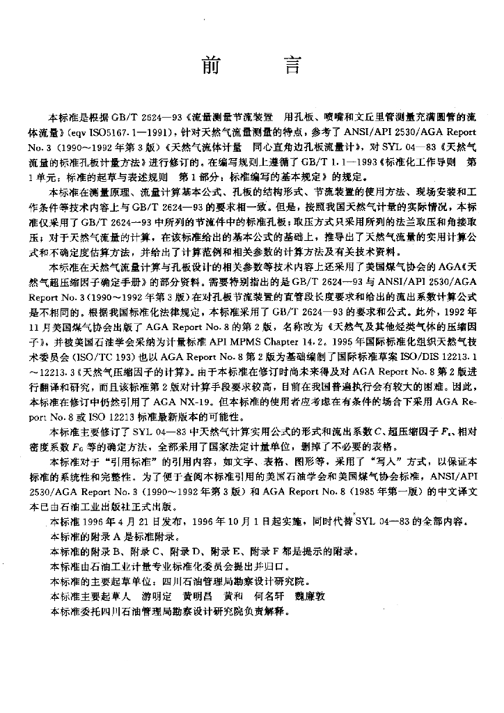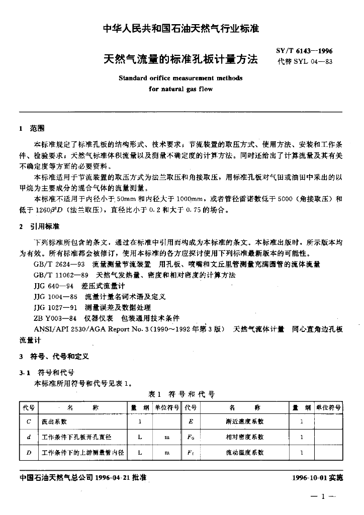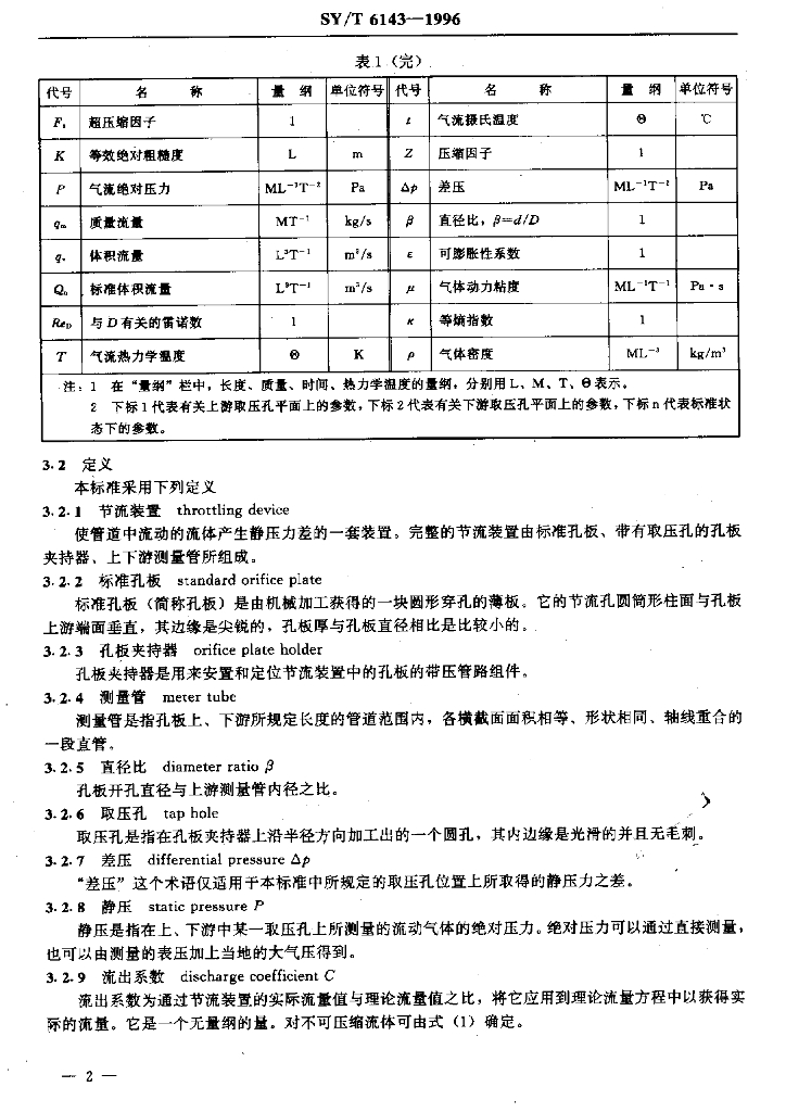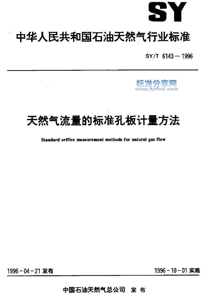 SY/T 6143-1996 天然气流量的标准孔板计量方法